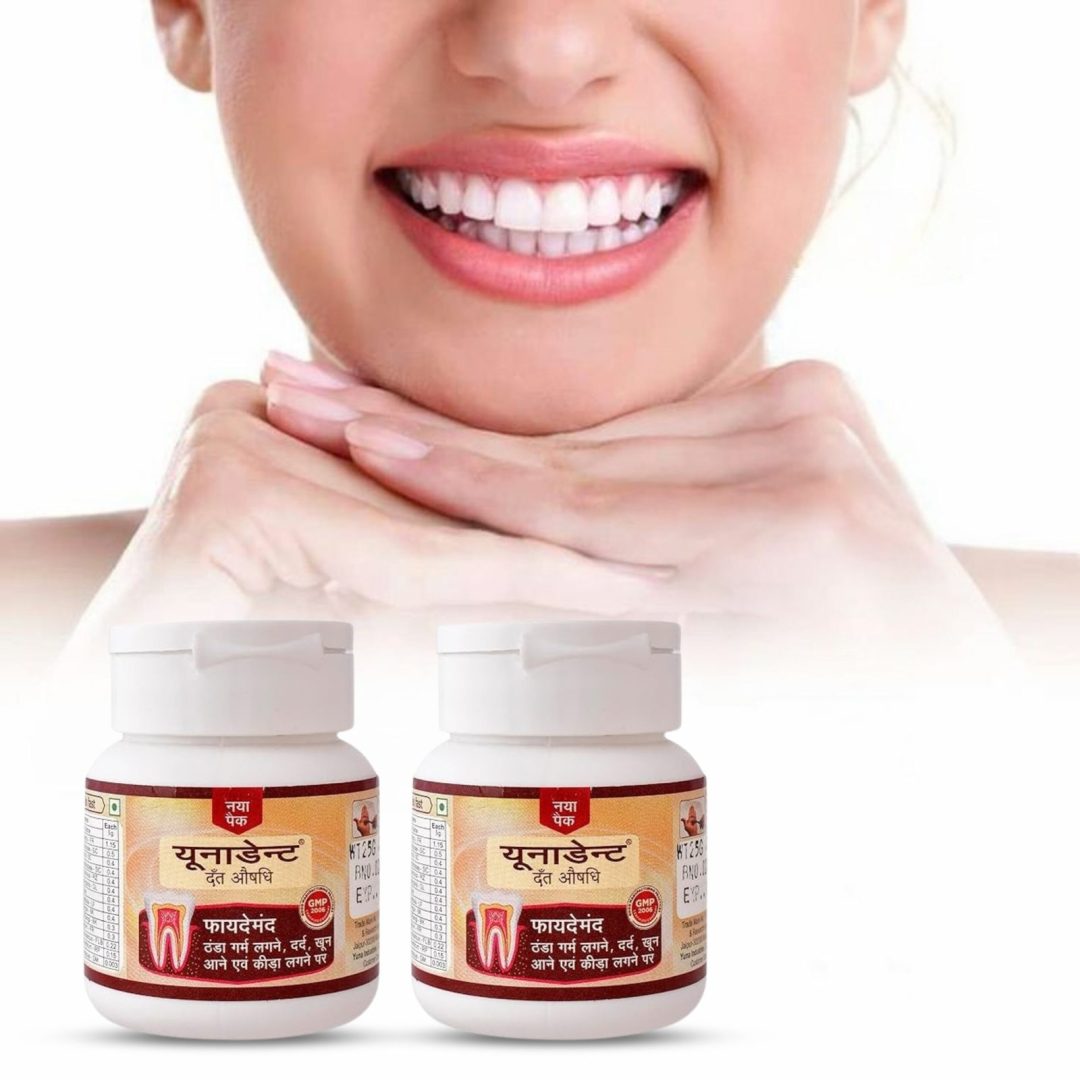 Yunadent has various herbs which has anti-bacterial, anti-fungal and anti-bleeding properties. This unique concoction contains a mild abrasive ingredient that gives natural polish and natural white appearance, while the other herbs used in Yunadent nourishes the gums, and helps in healing sensitivity, Bleeding gums, Dental pain, Cavity cleaning, jaw weakness, root canal Infection and gives natural Dental Polish to all age group of users.